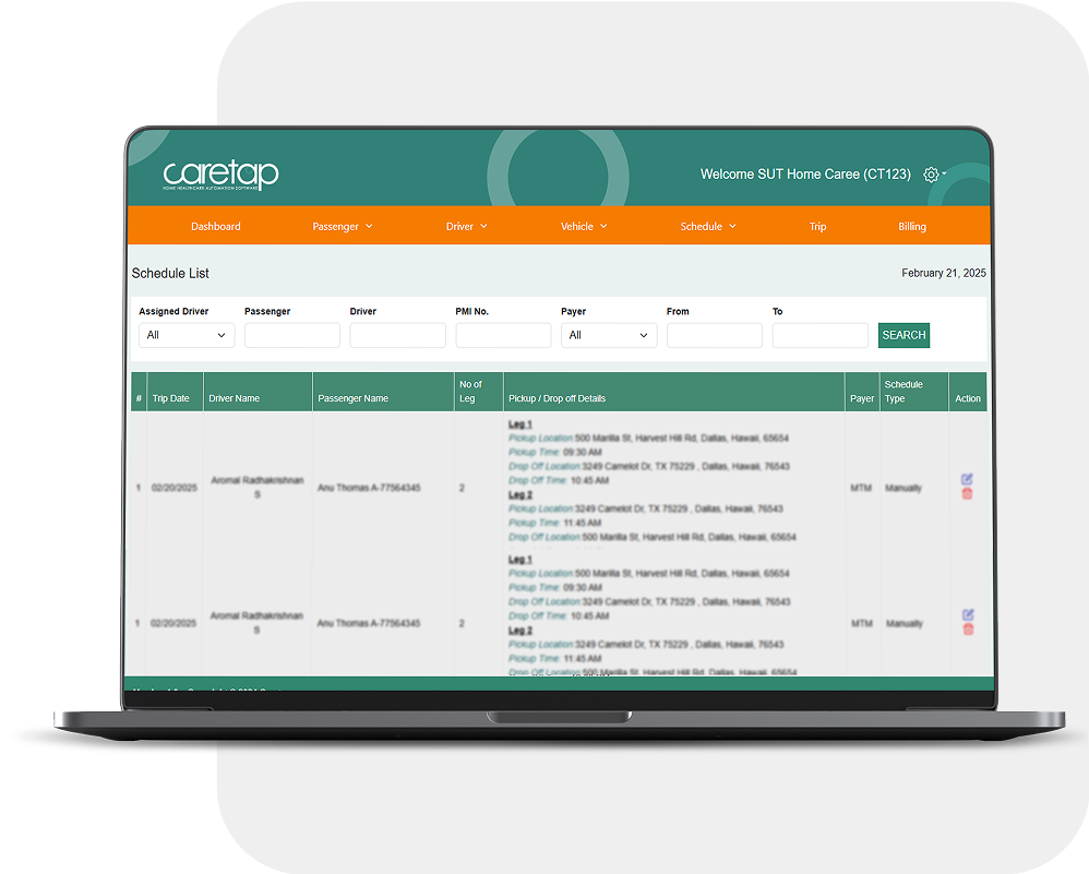 Caretap’s NEMT software takes care of all these challenges, where your only focus should be safely completing the trips; leave the rest to Caretap.